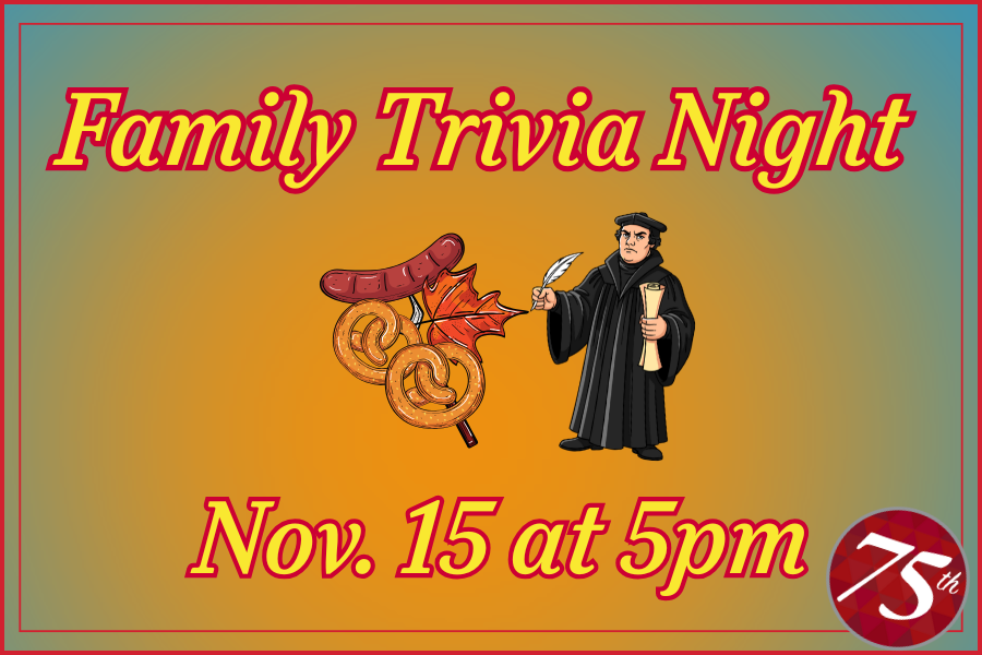 A 75th Anniversary Event – Join us on Saturday, November 15 at 5pm for a fun evening of trivia all about St. Mark’s, Lutherans, German culture and more! The menu includes German favorites like bratwurst and pretzels, as well as other deliciousness! Most of the main dishes will be provided, but there is an online sign up for desserts and extra sides available in the Monday email. If you plan on coming, let us know by signing up in Communication Central or calling the church office.